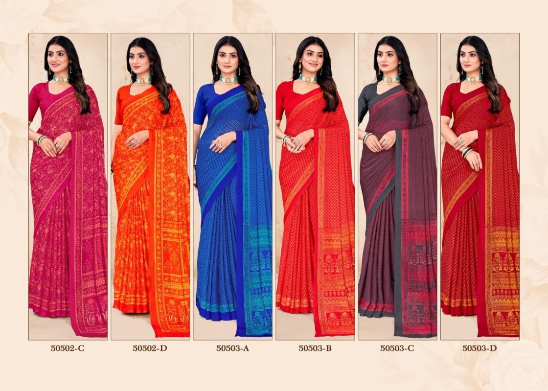 buy ruchi star chiffon vol 2 series 50501 A to 50503 D comfortable casual wear sarees collection in wholesale surat latest catalogue 2025