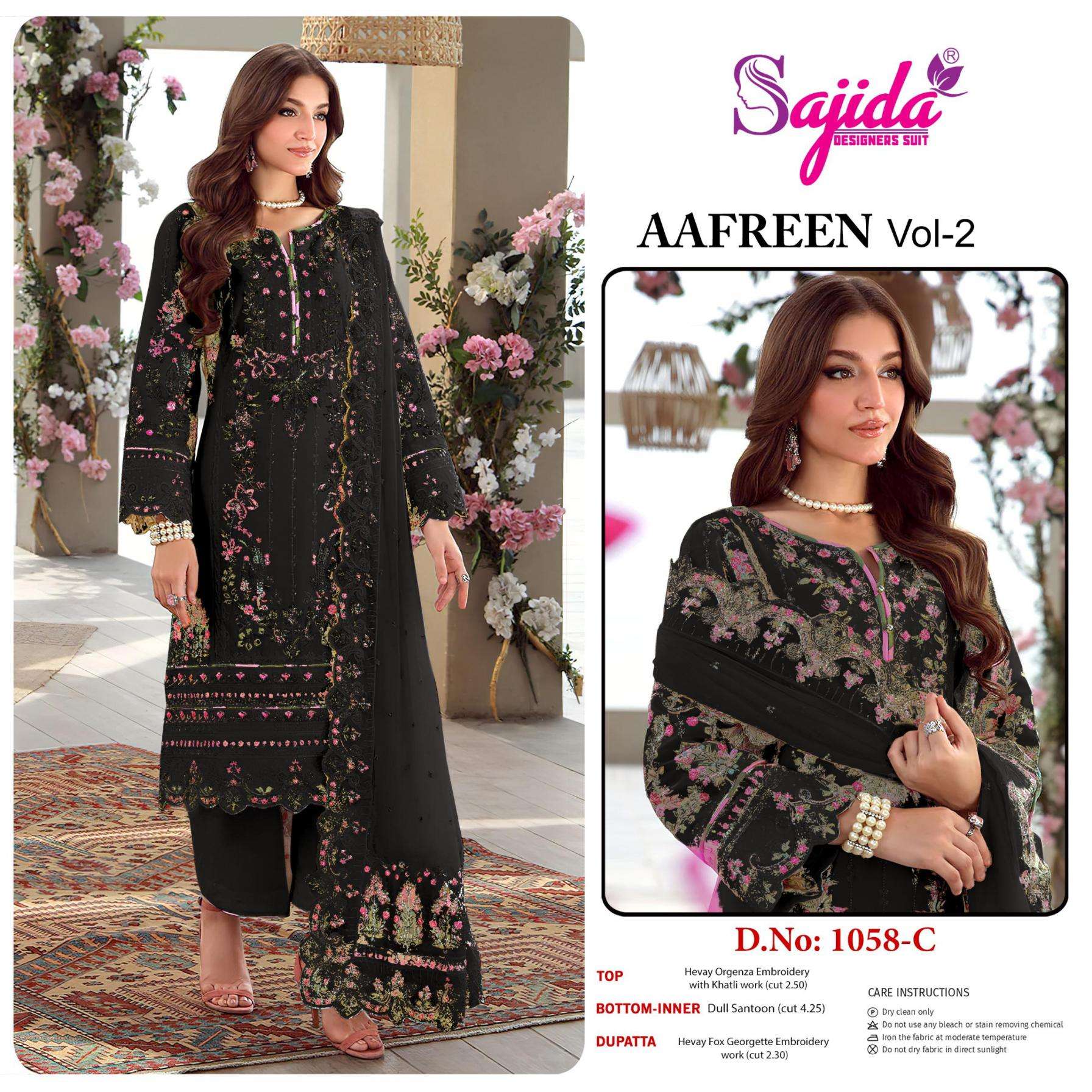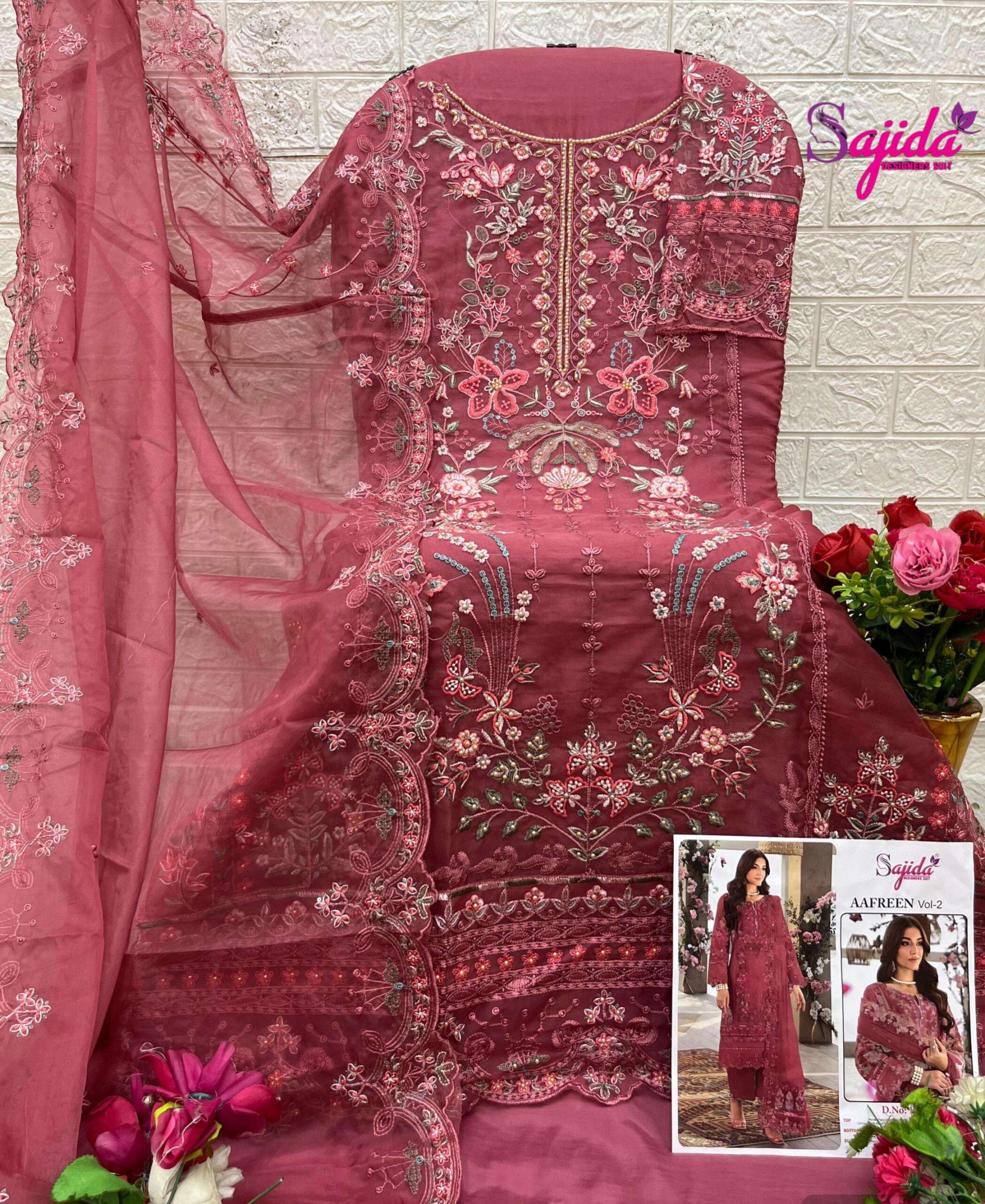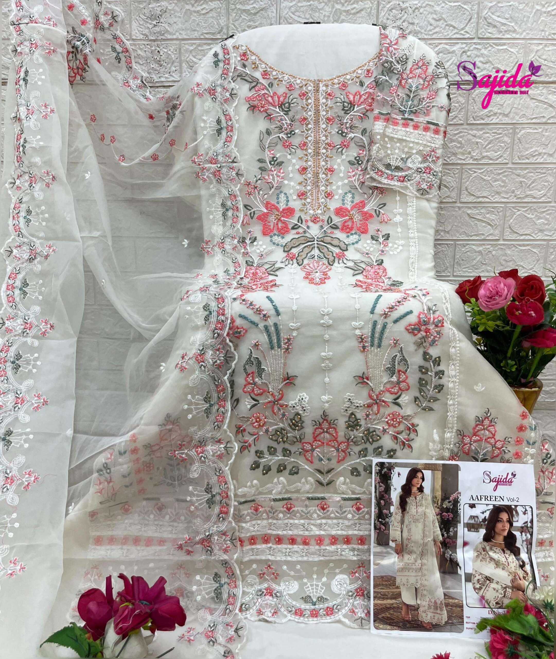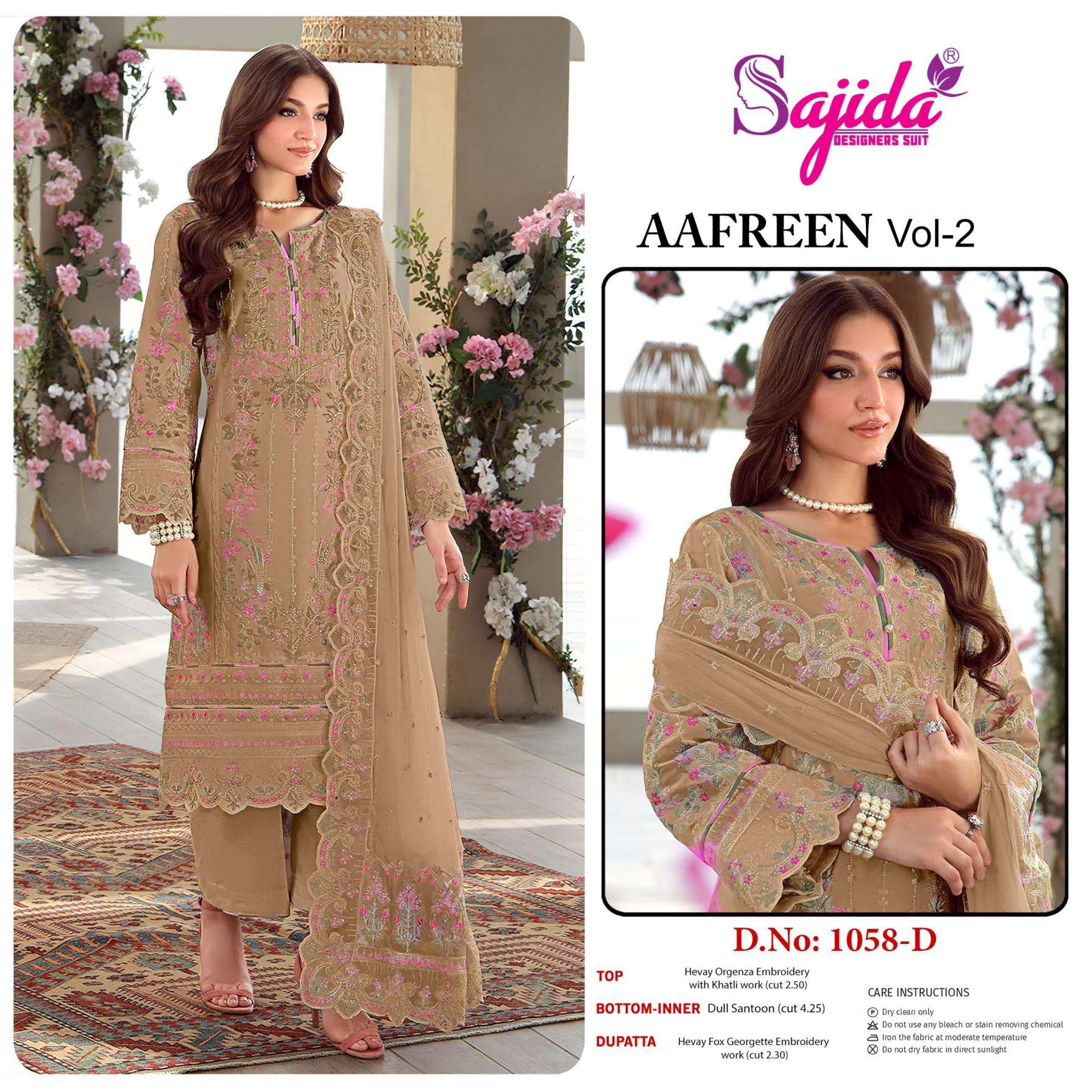 buy sajida designer aafreen vol 2 series 1058 A to 1058 D organza pakistani suit in wholesale surat latest catalogue 2025