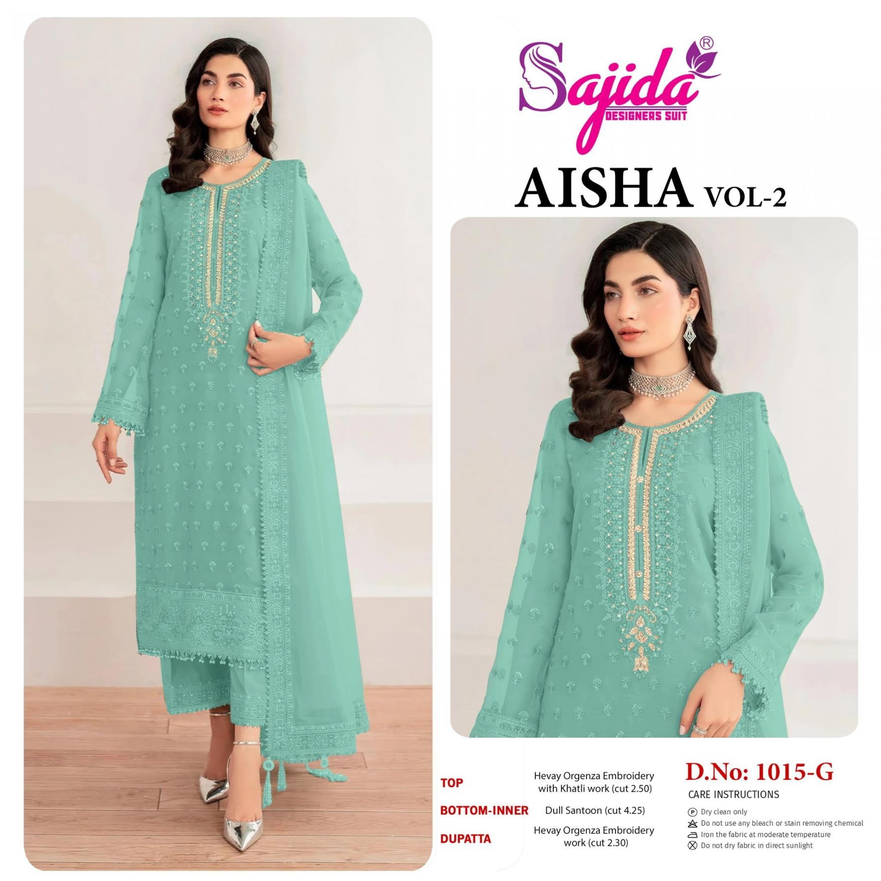 sajida designer aisha vol 2 series 1015 E to 1015 H organza designer pakistani suits in wholesale surat
