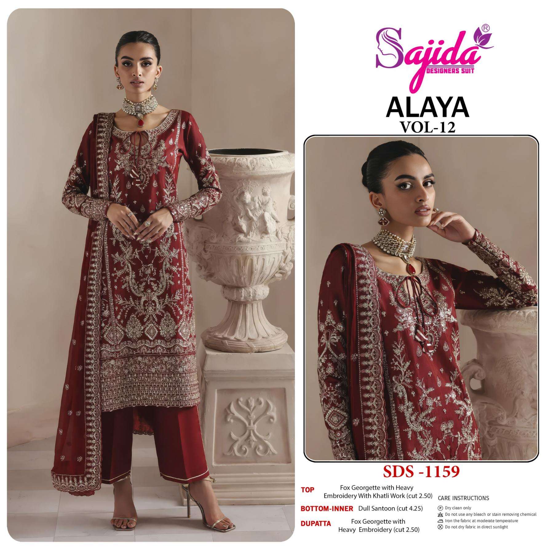 sajida designer alaya vol 12 series 1159-1161 fox georgette wholesale suit