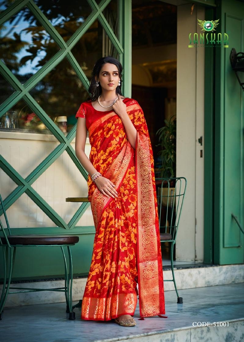 sanskar tex aanu series 51001 to 51008 prints hit design dola jari lining sarees in wholesale surat