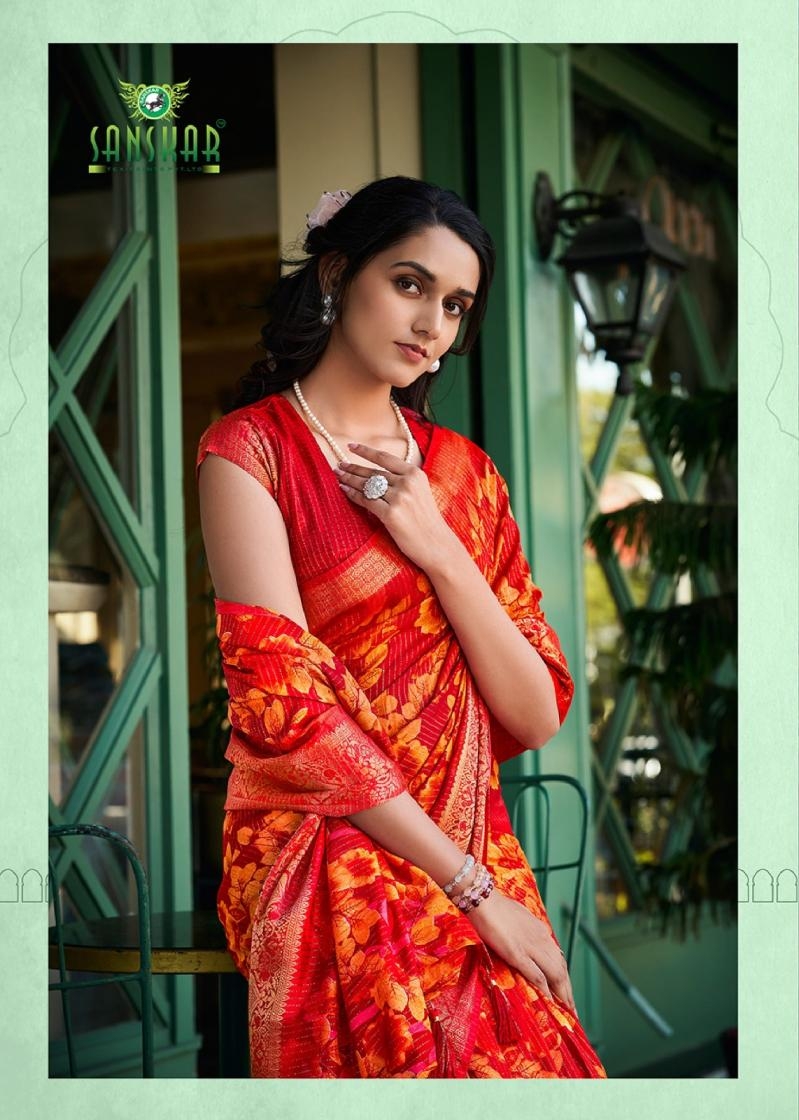 buy sanskar tex aanu series 51001 to 51008 prints hit design dola jari lining sarees in wholesale surat latest catalogue 2025