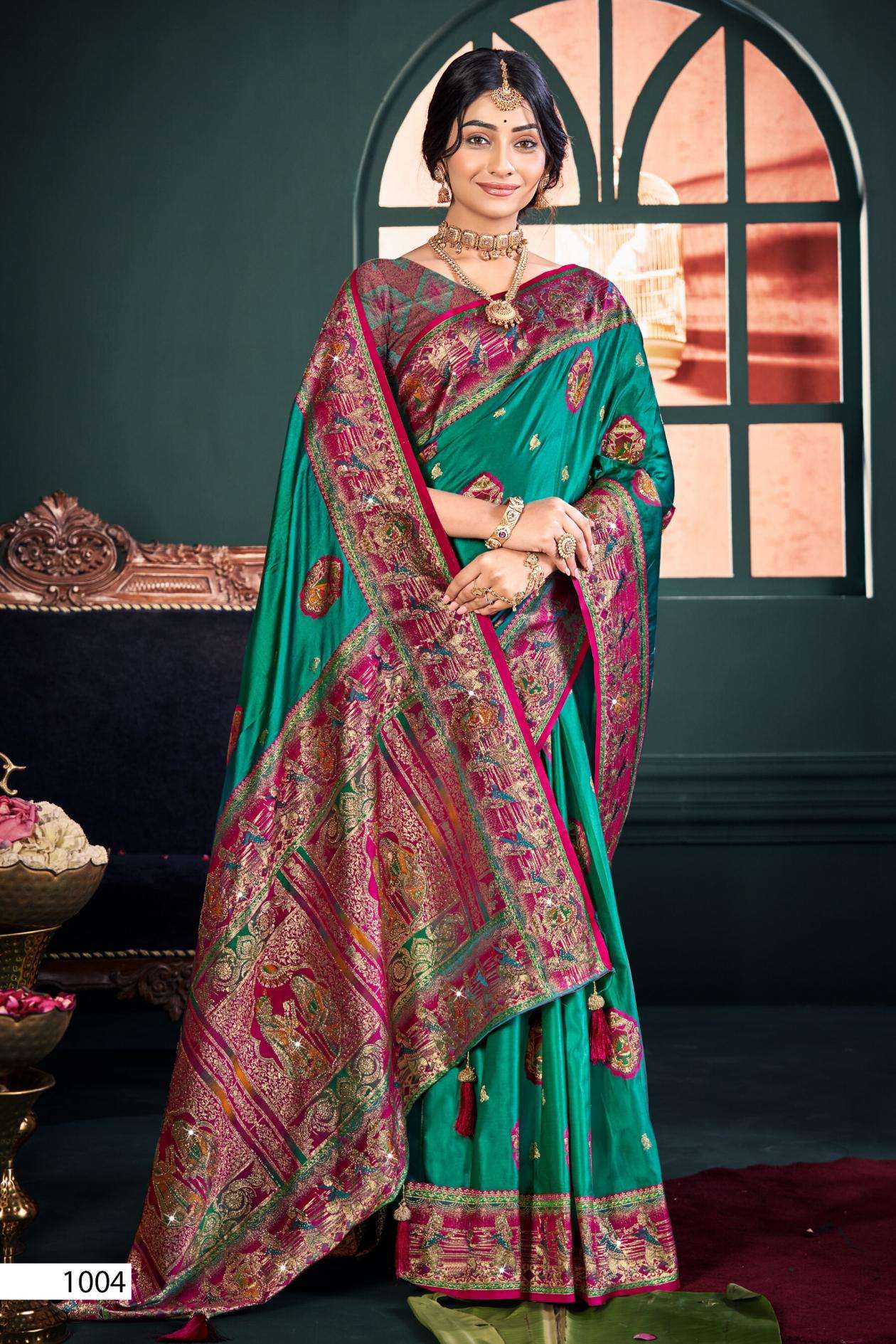 buy Saroj Aarya satin saroski vol.2 series 1001 to 1004 Satin silk saree in wholesale surat latest catalogue 2025