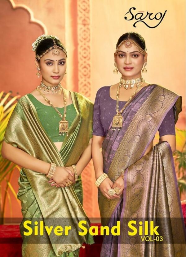 buy Saroj Silver sand silk vol.3 series 1001 to 1004 50*600 Silk Saree in wholesale surat latest catalogue 2025