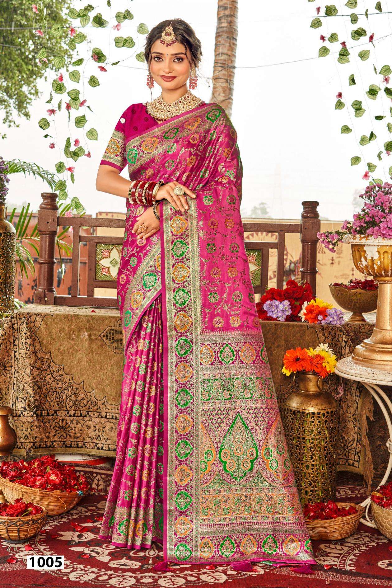 Saroj Tathastu satin silk vol.1 series 1001 to 1006 satin silk saree in wholesale surat Buy New Latest Catalogue 2025 Saroj Tathastu satin silk vol.1 series 1001 to 1006 satin silk saree in wholesale surat. Available in Singles and Bulk at Laiq Boutique. Buy at Wholesale price at very reasonable rate. Specification :
