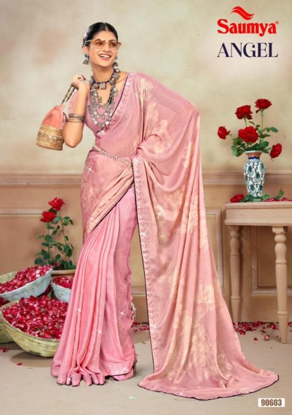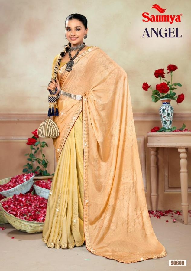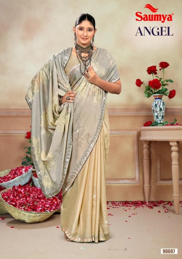 buy saumya angel series 90603 to 90608 chiffon brasso gorgeous look saree in wholesale surat latest catalogue 2025