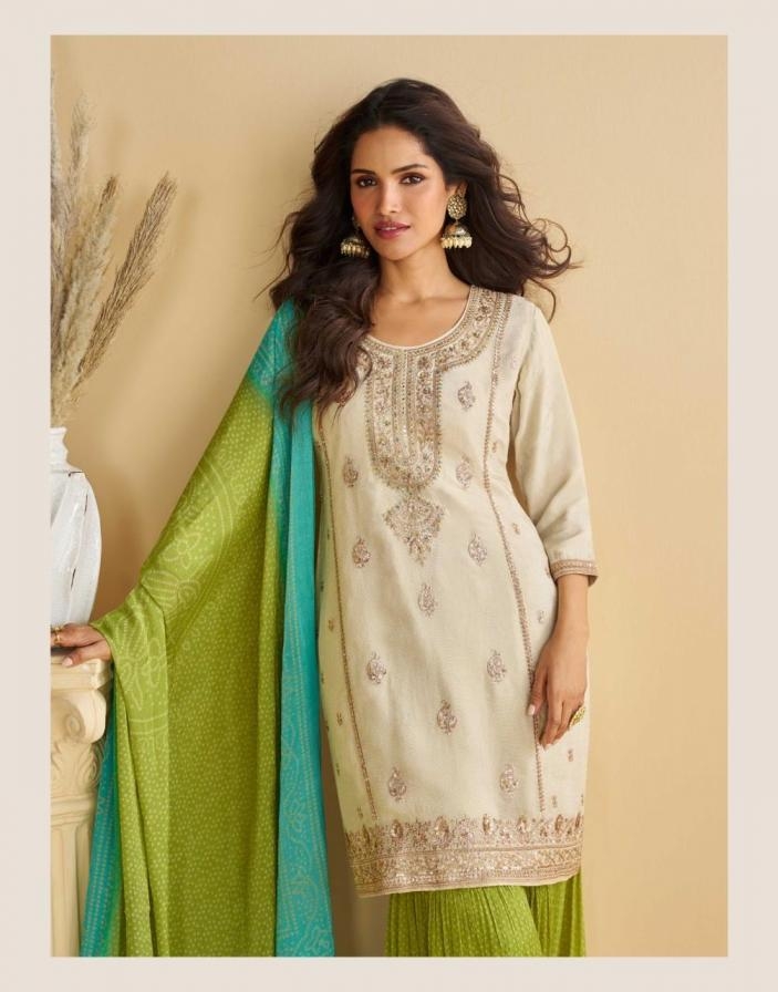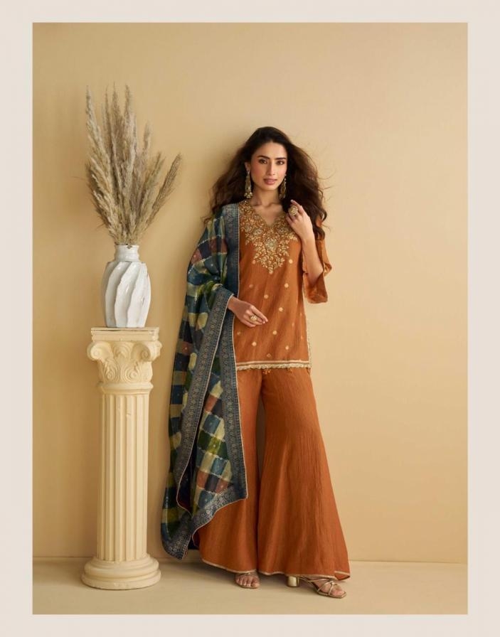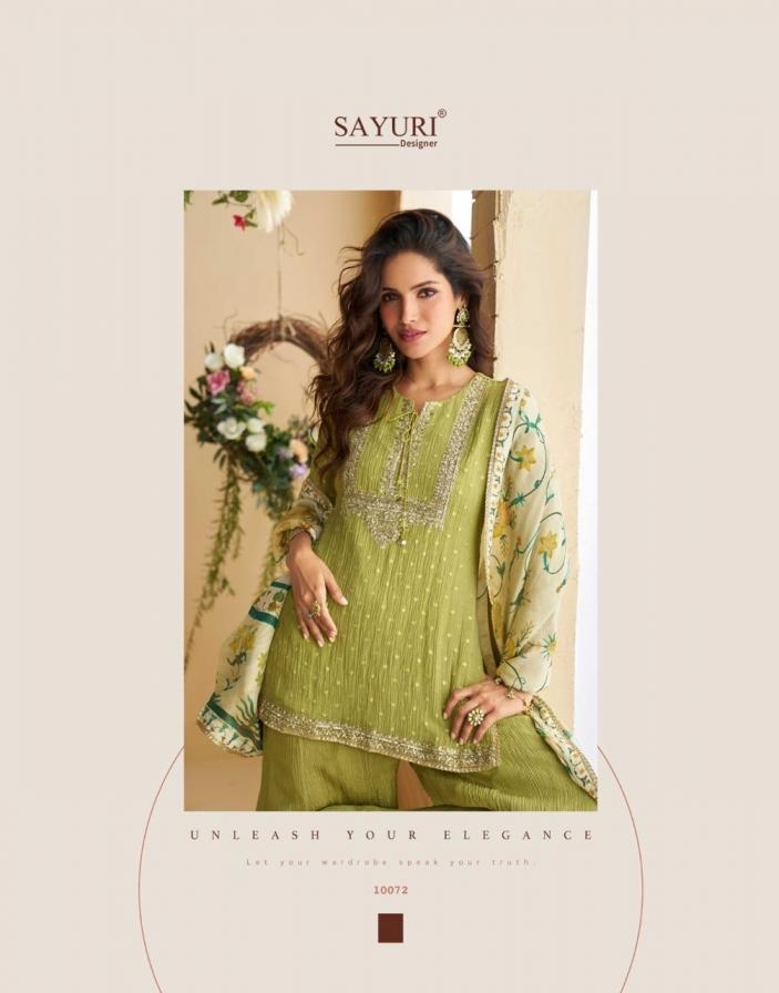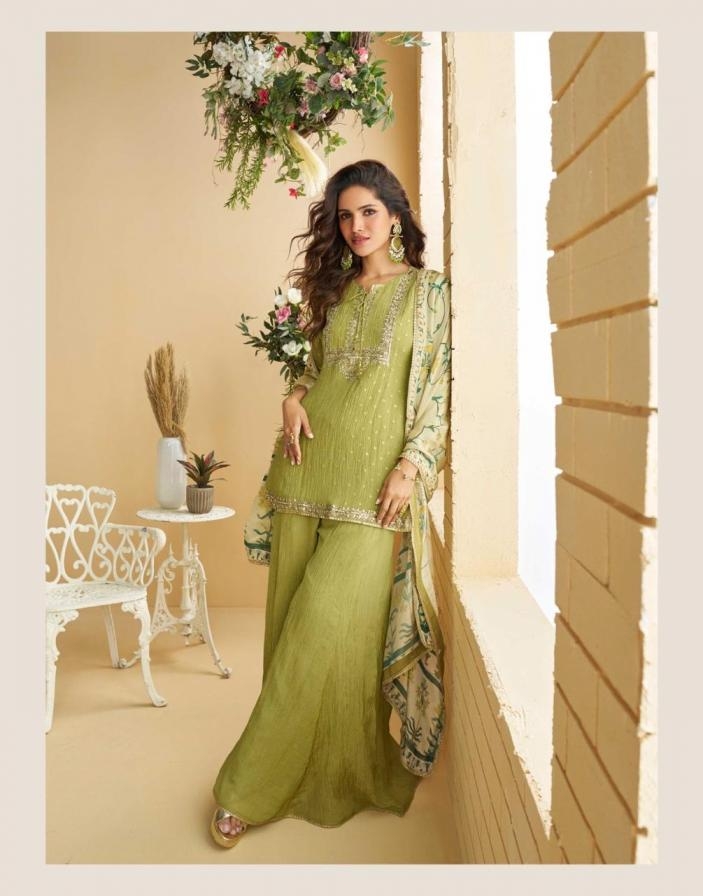 buy sayuri designer gulabo series 10069 to 10073 readymade festival wear chinon silk plazzo suits in wholesale surat latest catalogue 2025