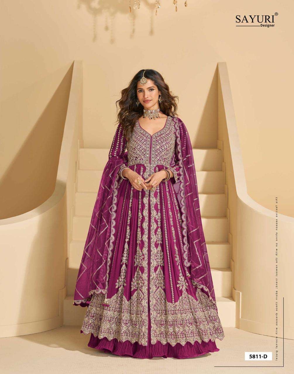 buy Sayuri Mirza 5811A to 5811E real chinon silk Partywear Designer Indo Western suit in wholesale surat latest catalogue 2025