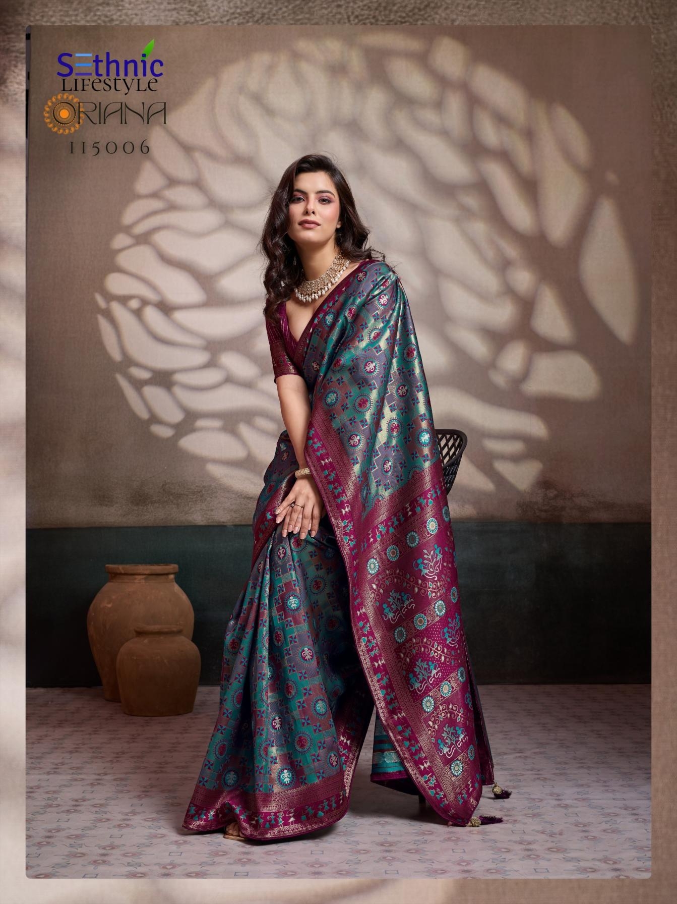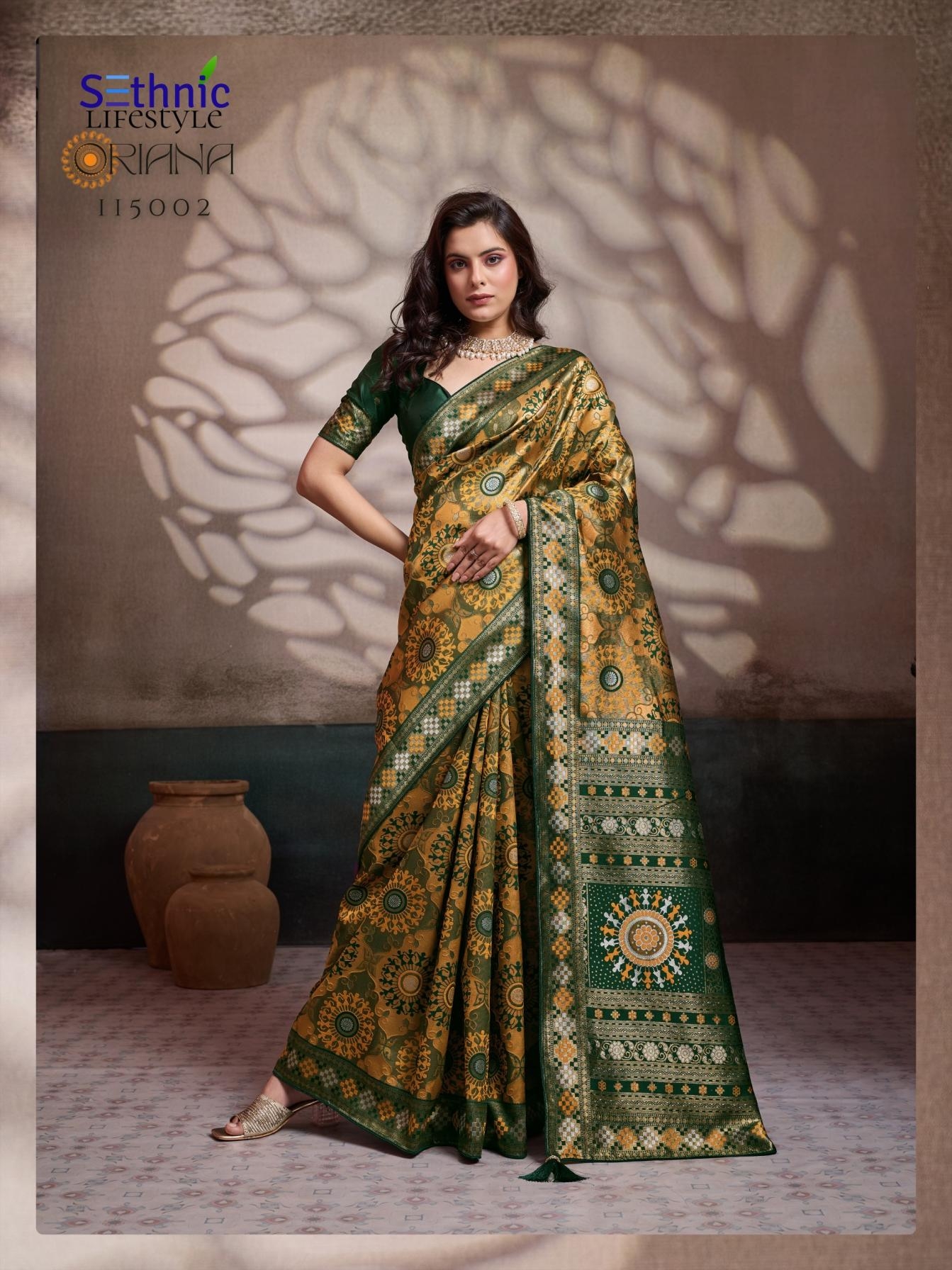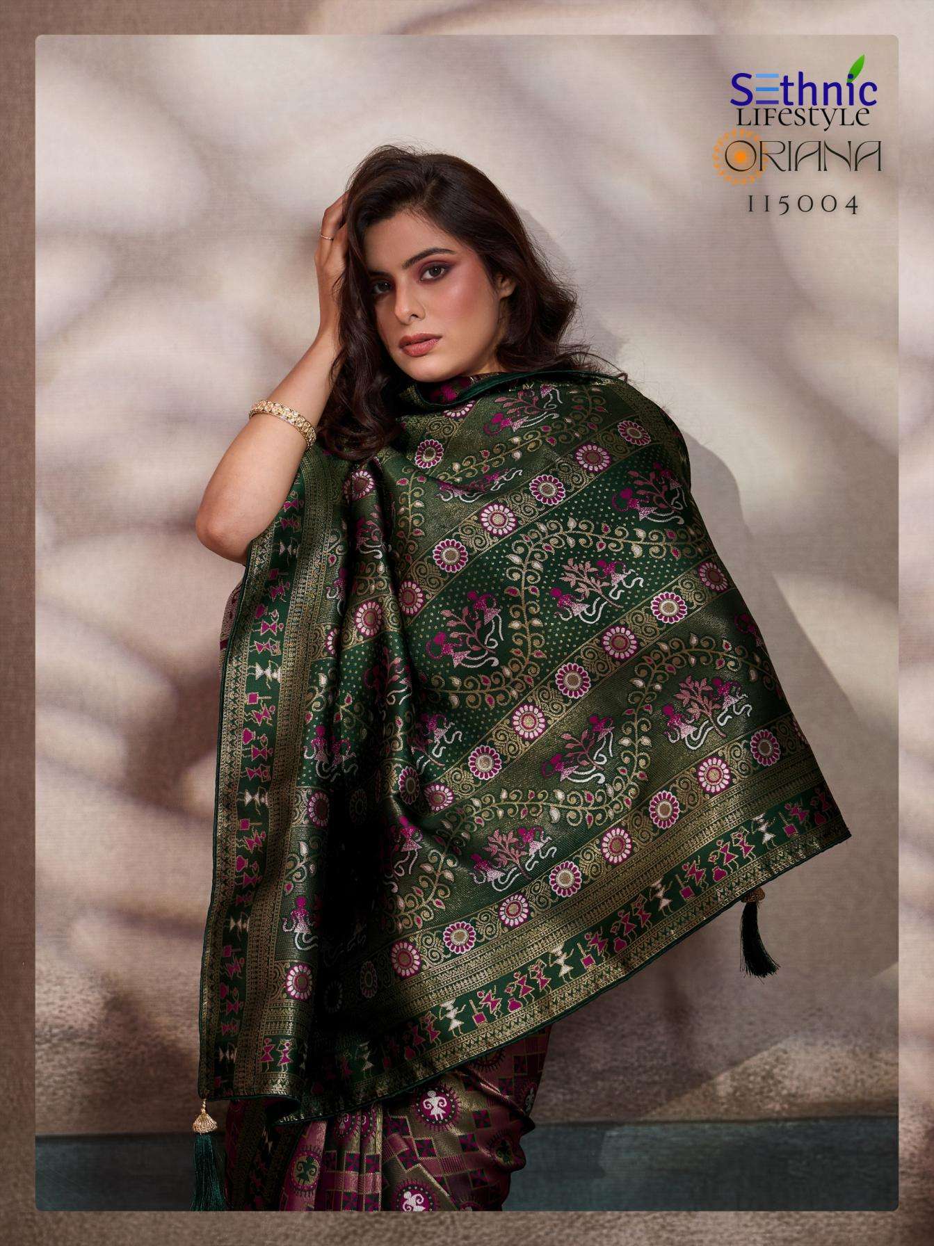 sethnic lifetstyle oriana series 115001 TO 115006 silk amazing meena kari sarees in wholesale surat Buy New Latest Catalogue 2025 sethnic lifetstyle oriana series 115001 TO 115006 silk amazing meena kari sarees in wholesale surat. Available in Singles and Bulk at Laiq Boutique. Buy at Wholesale price at very reasonable rate. Specification :