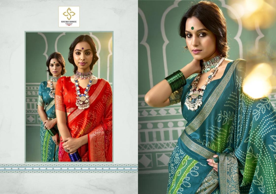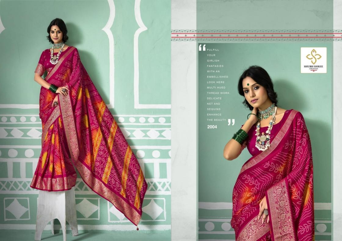 buy shubh shree creation kaashi vol 2 series 2001 to 2004 bandhej velvet tusser silk best saree in wholesale surat latest catalogue 2025