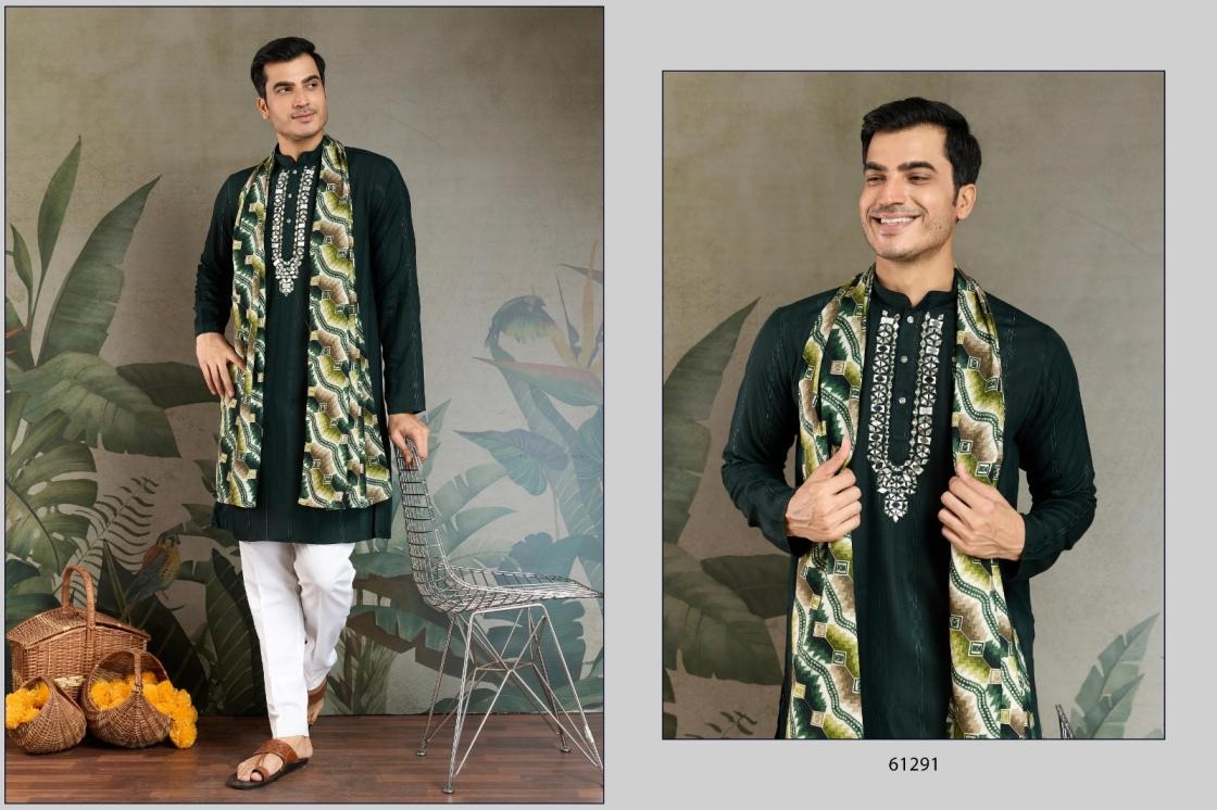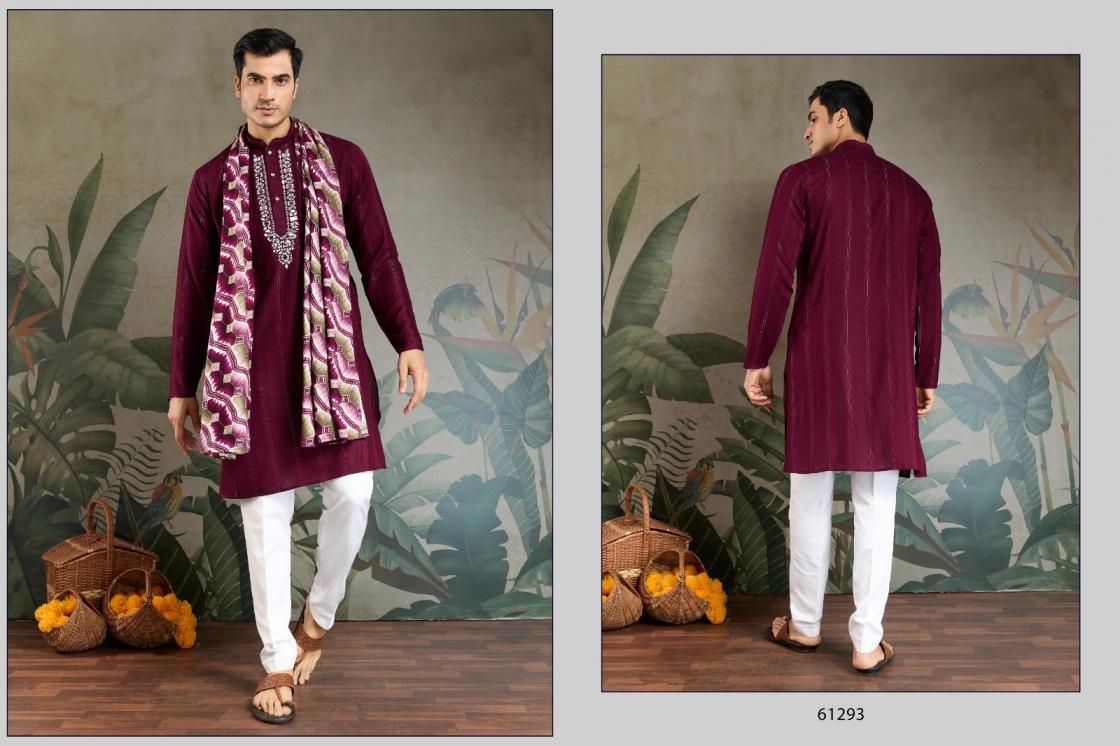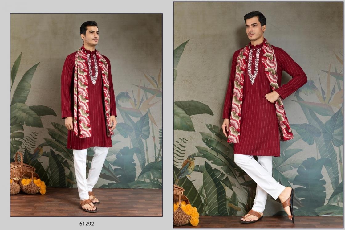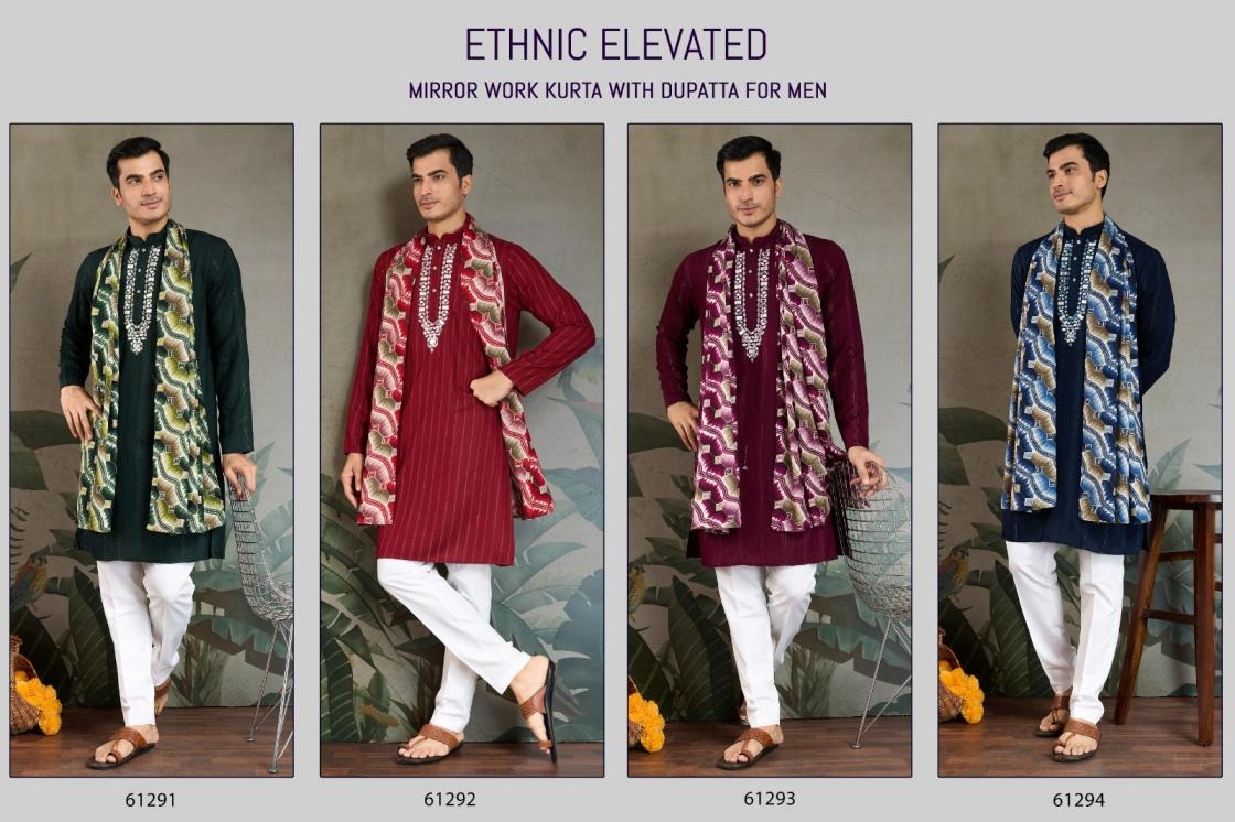 buy shubhvastra ethnic elevated series 61291 to 61294 readymade viscose mens kurta with dupatta in wholesale surat latest catalogue 2025