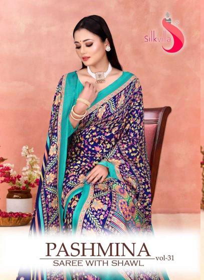 buy Silk Villa Pashmina Saree with Shawl Vol 31 Series 34001-34009 Winter Special Pashmina Sarees in Surat latest catalogue 2025