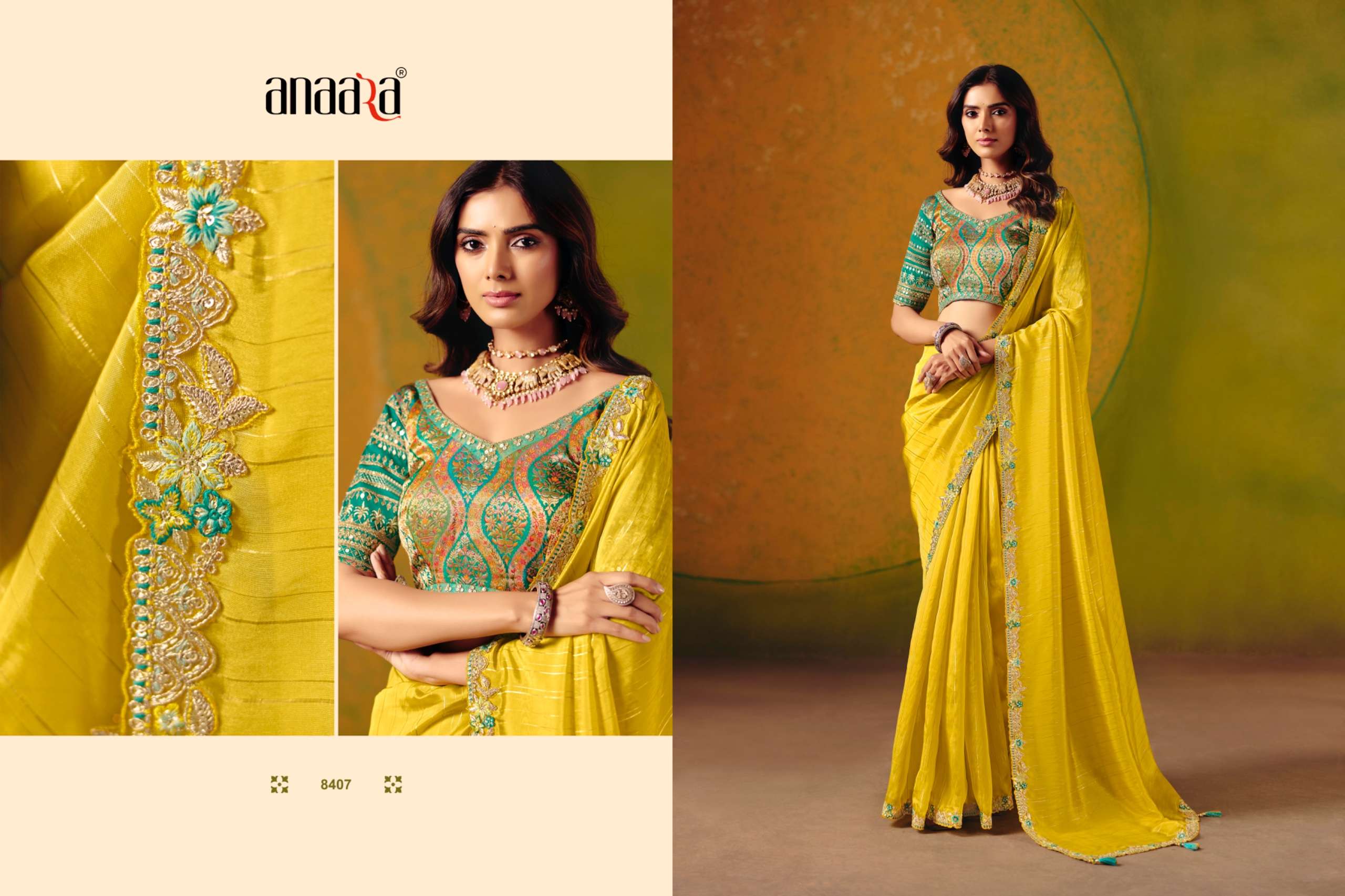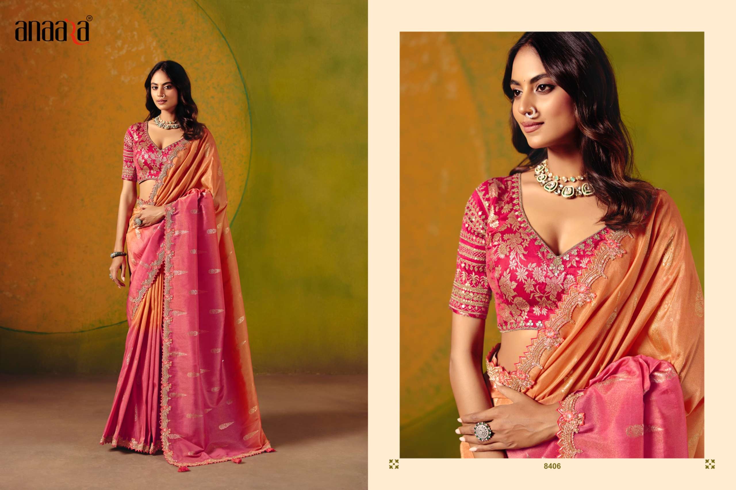 tathastu series 8401-8408 fancy embroidery party wear wholesale saree Buy New Latest Catalogue 2025 tathastu series 8401-8408 fancy embroidery party wear wholesale saree. Available in Singles and Bulk at Laiq Boutique. Buy at Wholesale price at very reasonable rate. Specification :