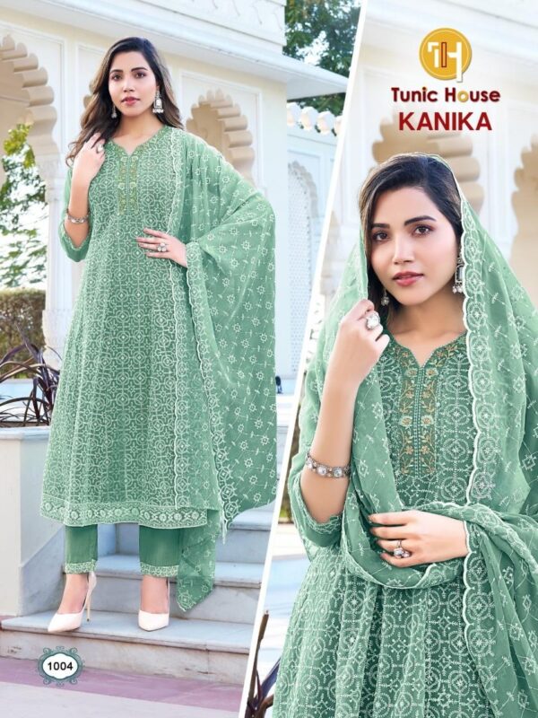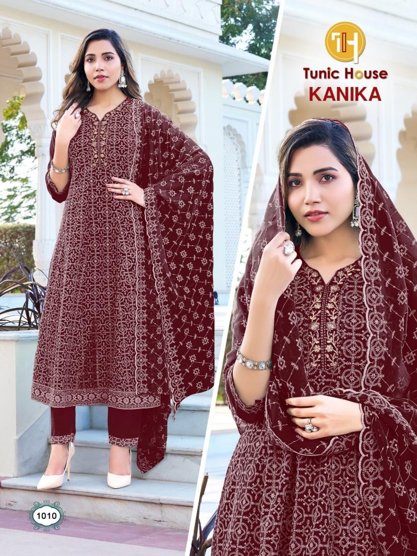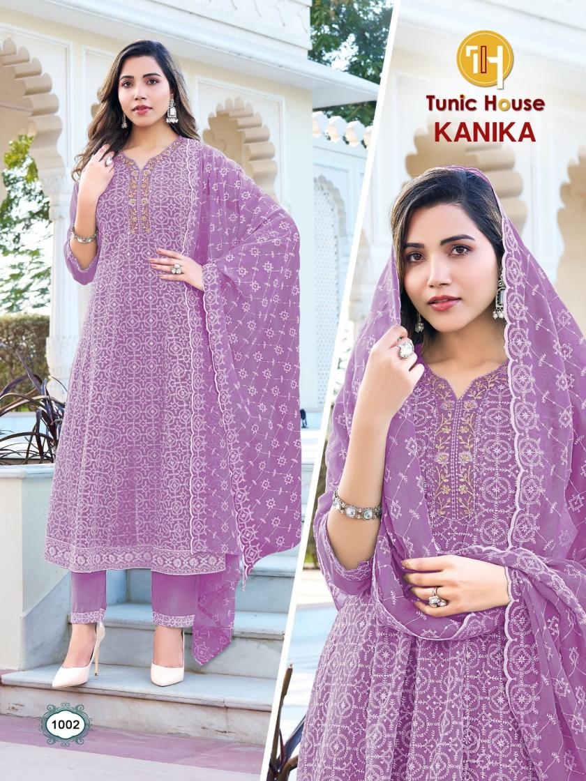buy TUNIC HOUSE KANIKA SERIES 1001 TO 1012 ANARKALI CHIKAN WORK KURTI SET COMBO SET IN WHOLESALE SURAT latest catalogue 2025