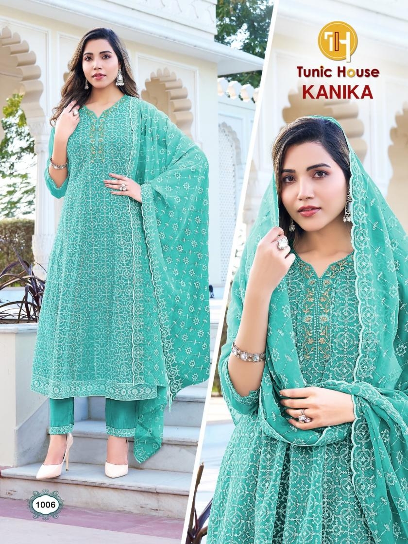 | Name : | Tunic House Kanika Series 1001 To 1012 Anarkali Chikan Work Kurti Set Combo Set In Wholesale Surat | |