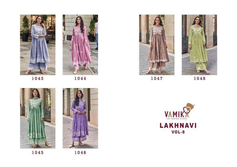 Vamika lakhnavi vol 8 series 1043-1048 rayon wholesale suit