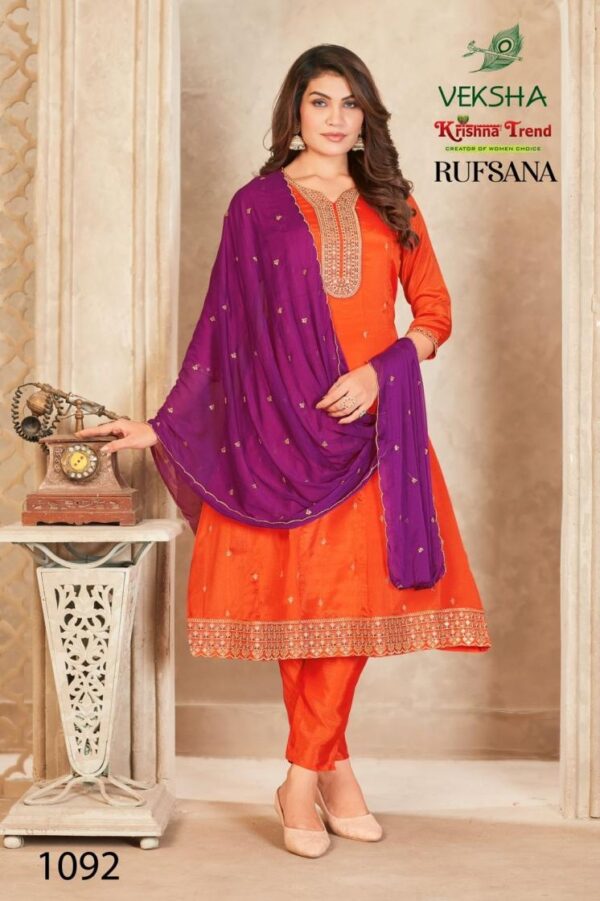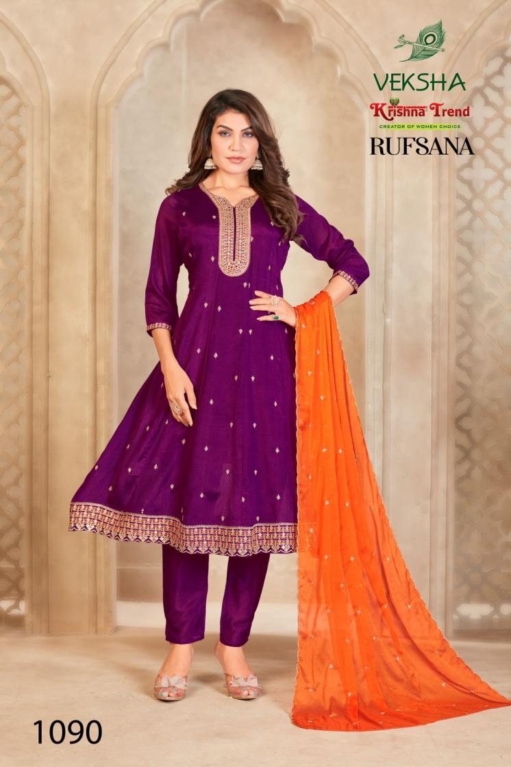 • Full Name : Veksha Krishna Trend Rufsana Series 1090 To 1097 Readymade Chinon Died Elegance Suit In Wholesale Surat