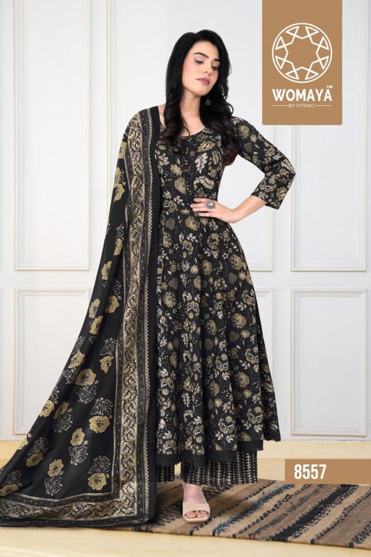 womaya classy contessa series 8554 to 8557 anarkali cotton combo set readymade gown with dupatta in wholesale surat