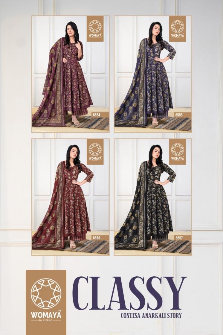 buy womaya classy contessa series 8554 to 8557 anarkali cotton combo set readymade gown with dupatta in wholesale surat latest catalogue 2025