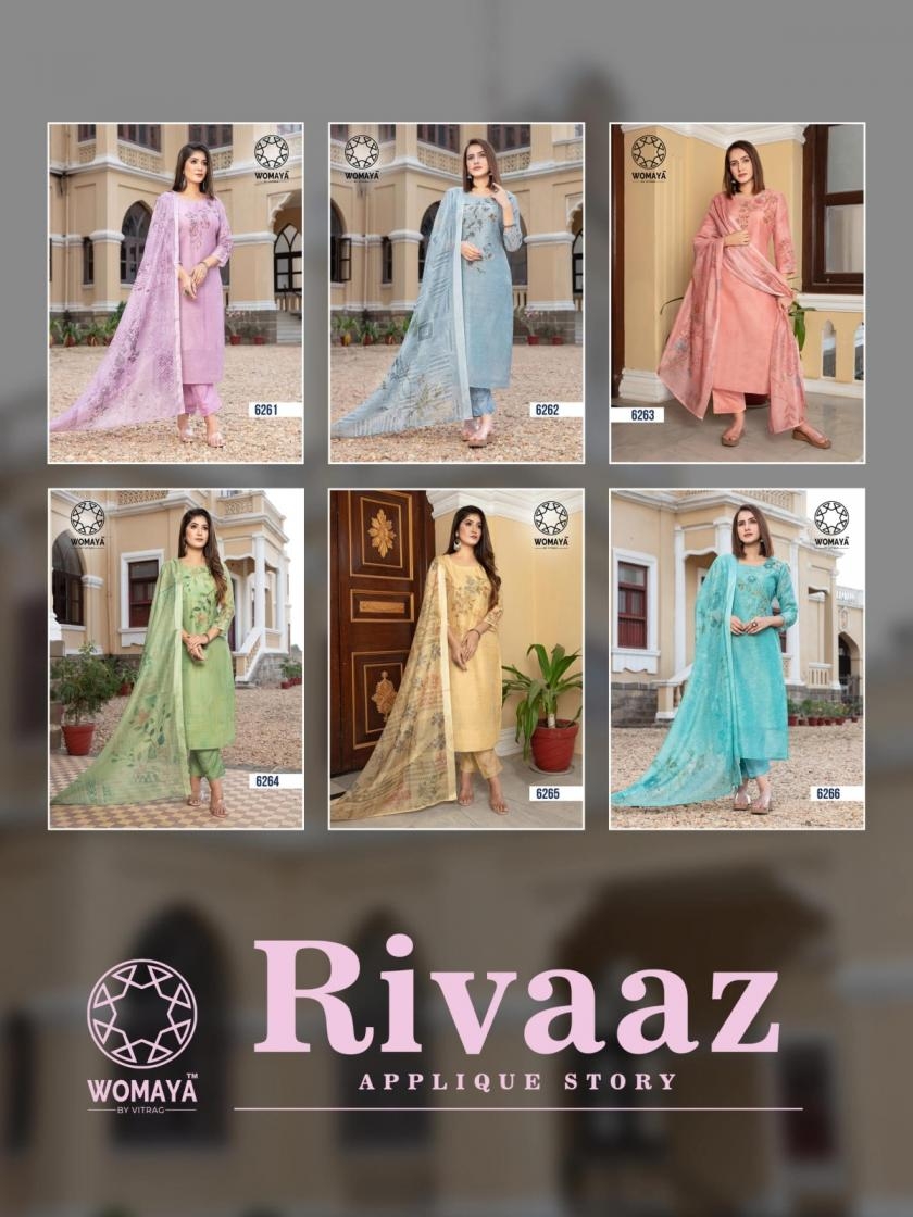 • Full Name : Womaya Rivaaz Applique Story Series 6261 To 6266 Readymade Modal Silk Combo Suit In Wholesale Surat