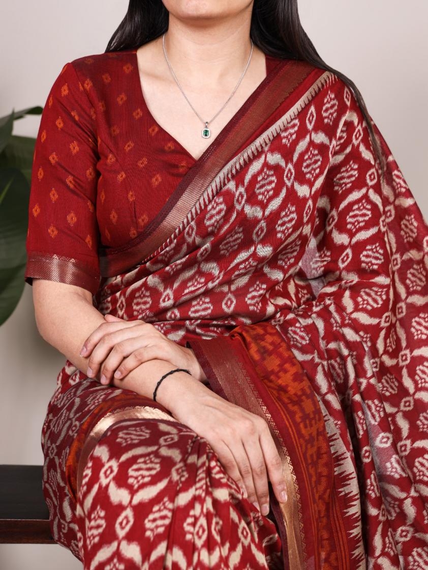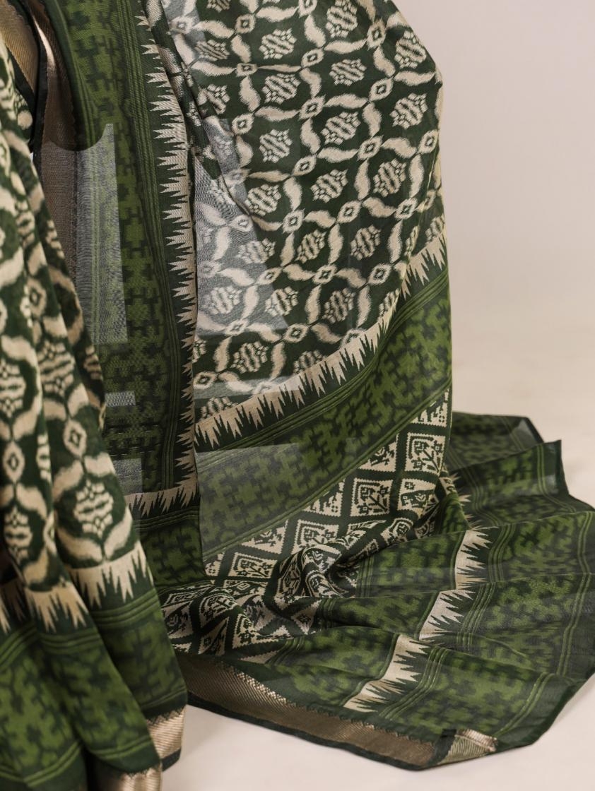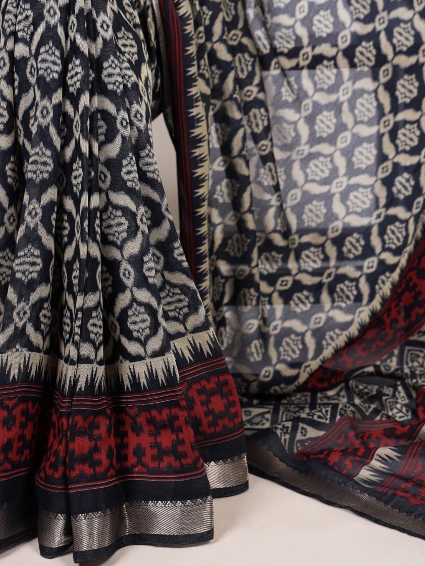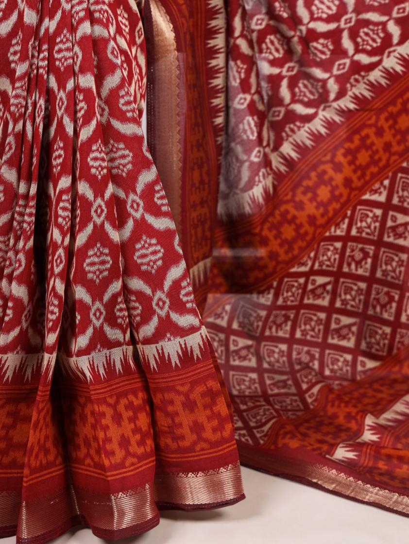 Saree Work : Ikkat Print with Zari Weaving Boarder
