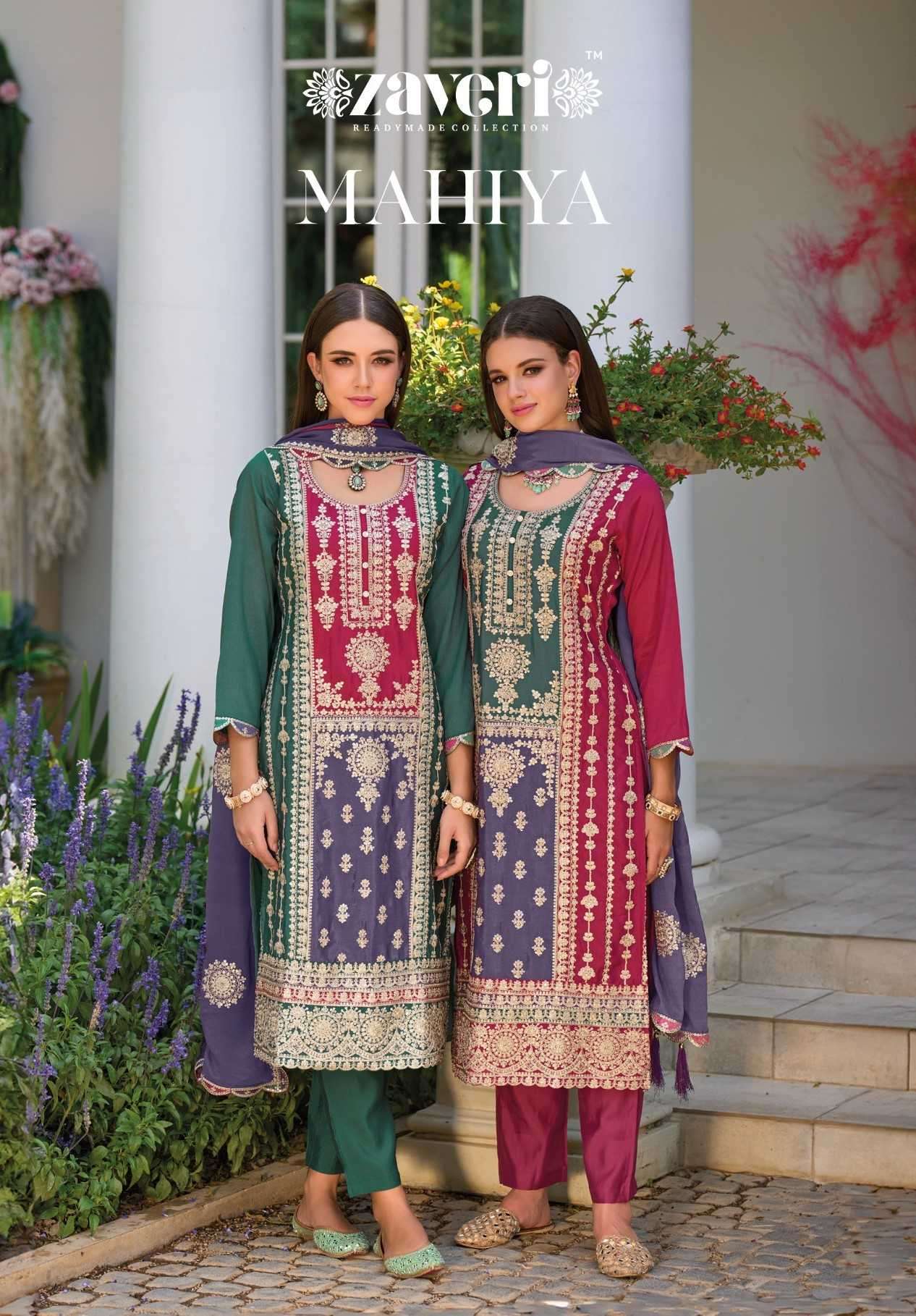 buy zaveri mahiya series 1302-1303 heavy Chinon readymade suit latest catalogue 2025