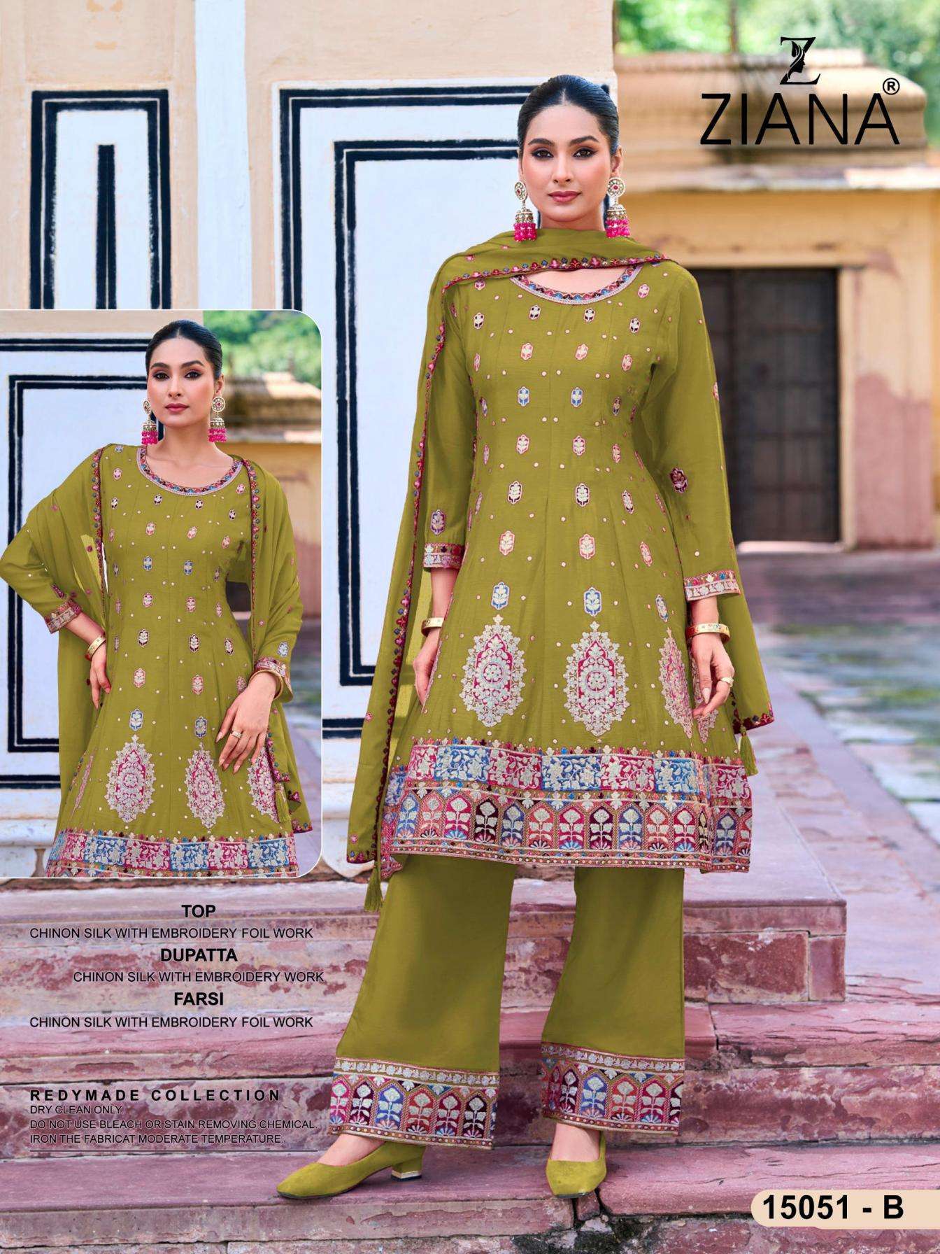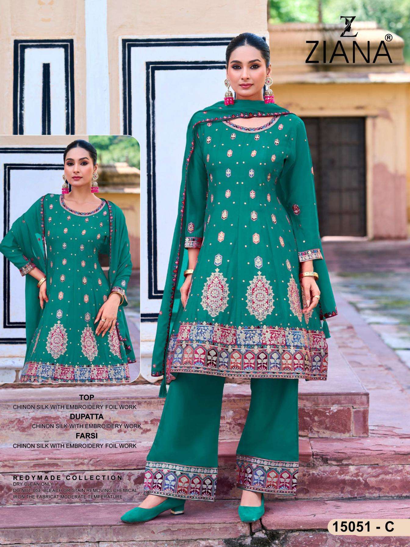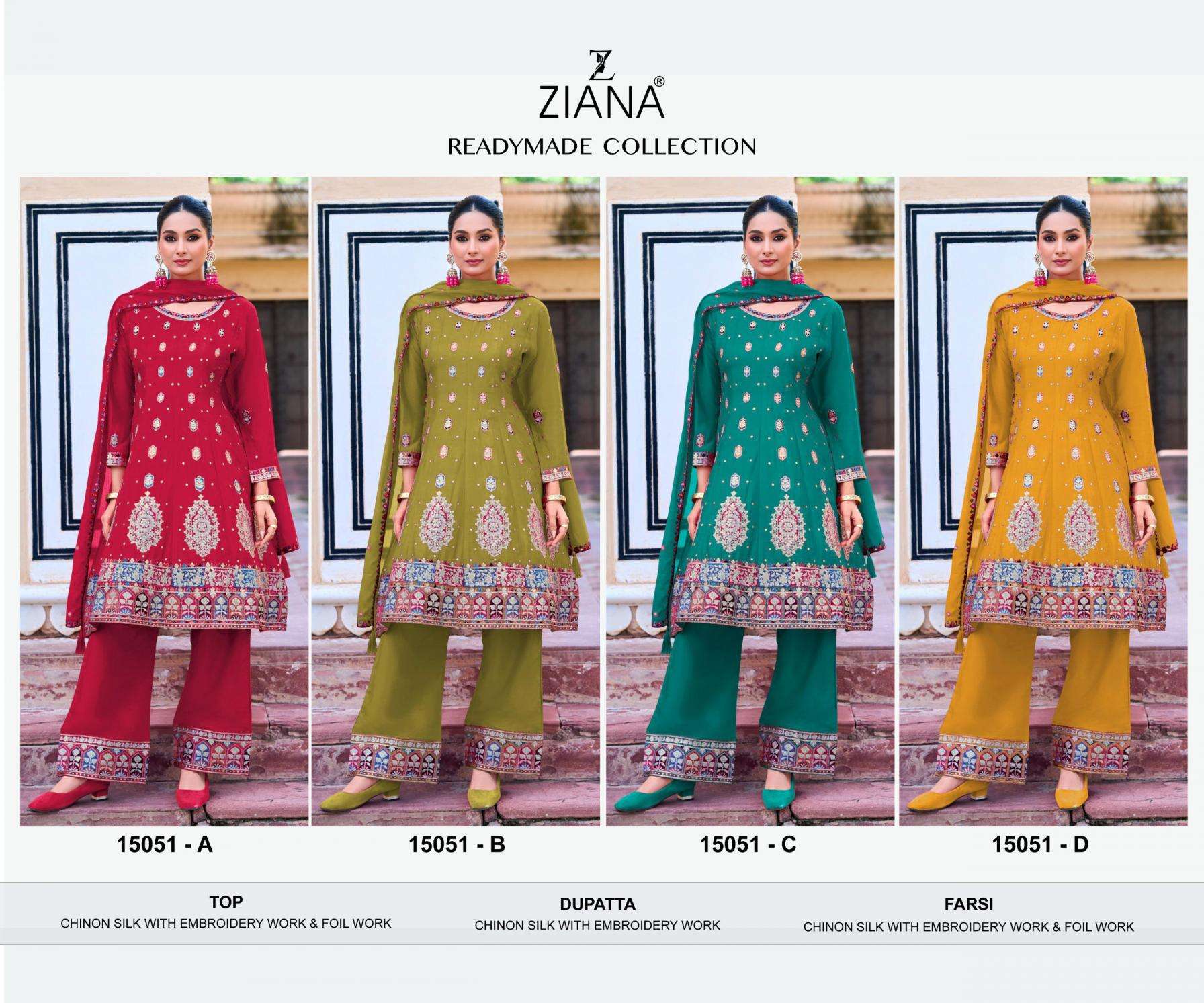 buy ziana 15051 series 15051A to 15051D designer embroidery readymade combo suit in wholesale surat latest catalogue 2025