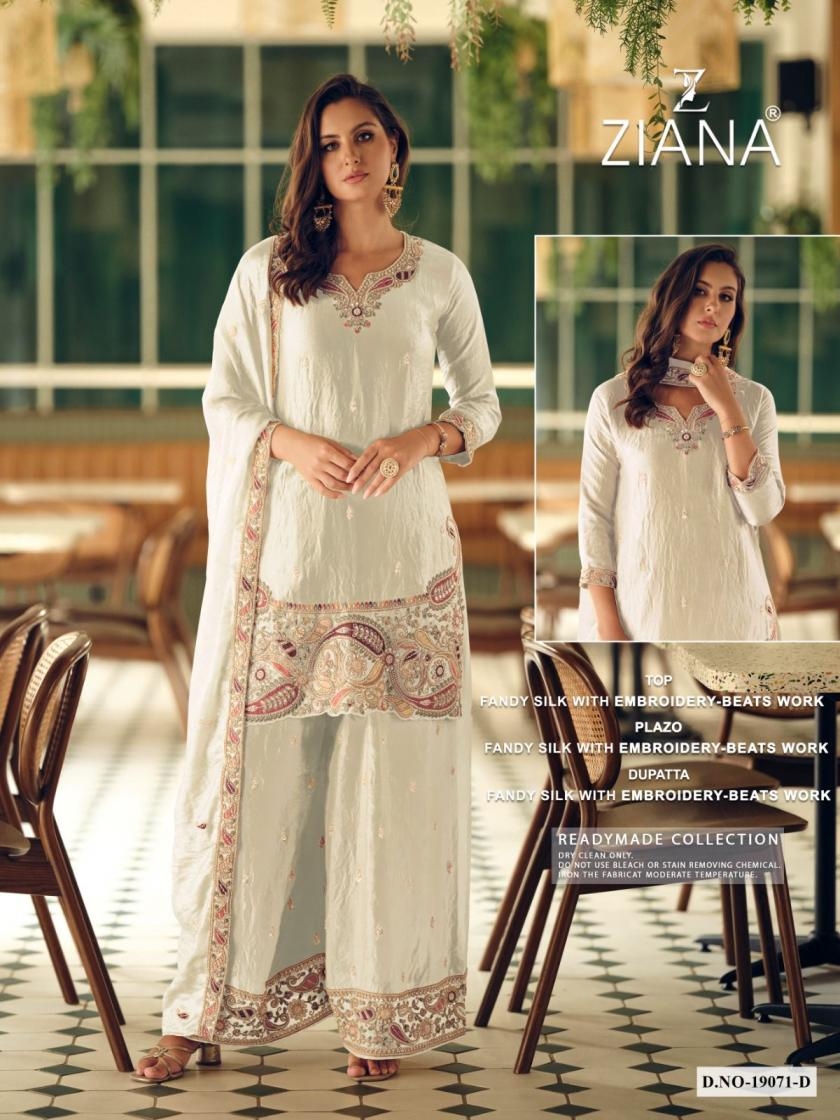 buy ziana 19071 readymade exclusive fandy silk beats work combo plazzo suits latest catalogue 2025